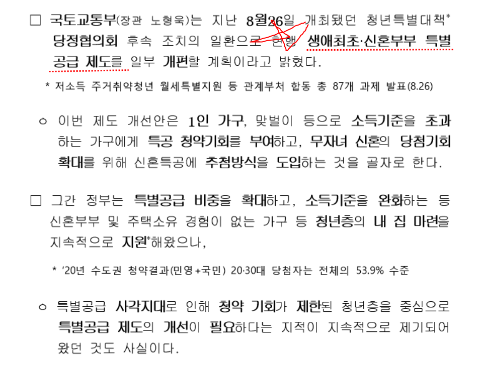 생애최초 및 신혼부부 특별공급에 대한 사각지대를